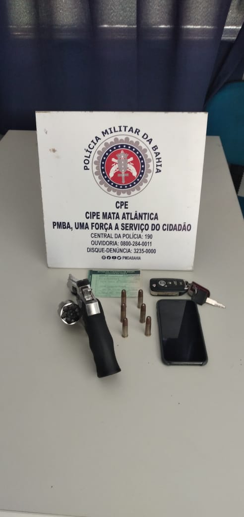 Dentro da residência, os policiais encontraram uma arma de airsoft e após consulta Infoseg, foi constatado que o veículo possuía restrição de furto/roubo.
