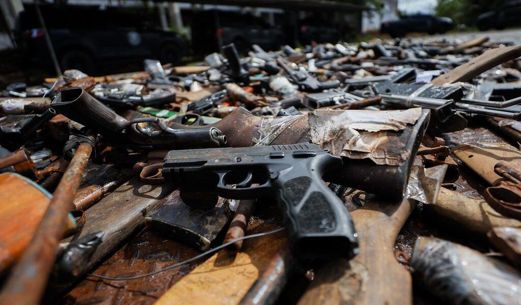No total foram apreendidos 3.711 armamentos nos seis primeiros meses deste ano, contra 3.134 no 1° semestre de 2024.
