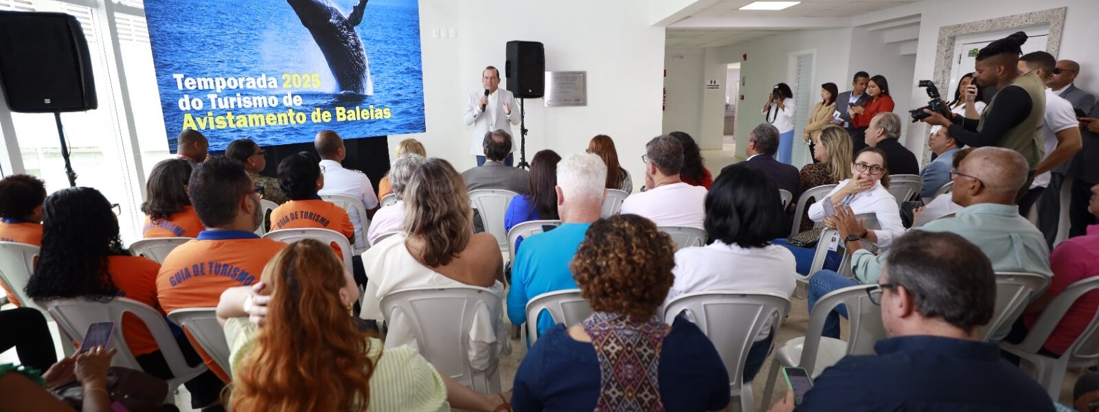 O evento contou com a presença do vice-governador Geraldo Júnior e do secretário de Turismo, Maurício Bacelar. Geraldo Júnior ressaltou a importância da iniciativa afirmando que o turismo de avistamento “impulsiona a economia local, preserva o meio ambiente e valoriza a biodiversidade baiana”. Já o secretário destacou que o governo está trabalhando na estruturação do setor, dizendo: “estamos estruturando rotas, qualificando operadores e promovendo nosso litoral. As baleias são um espetáculo e a Bahia, o palco perfeito.”