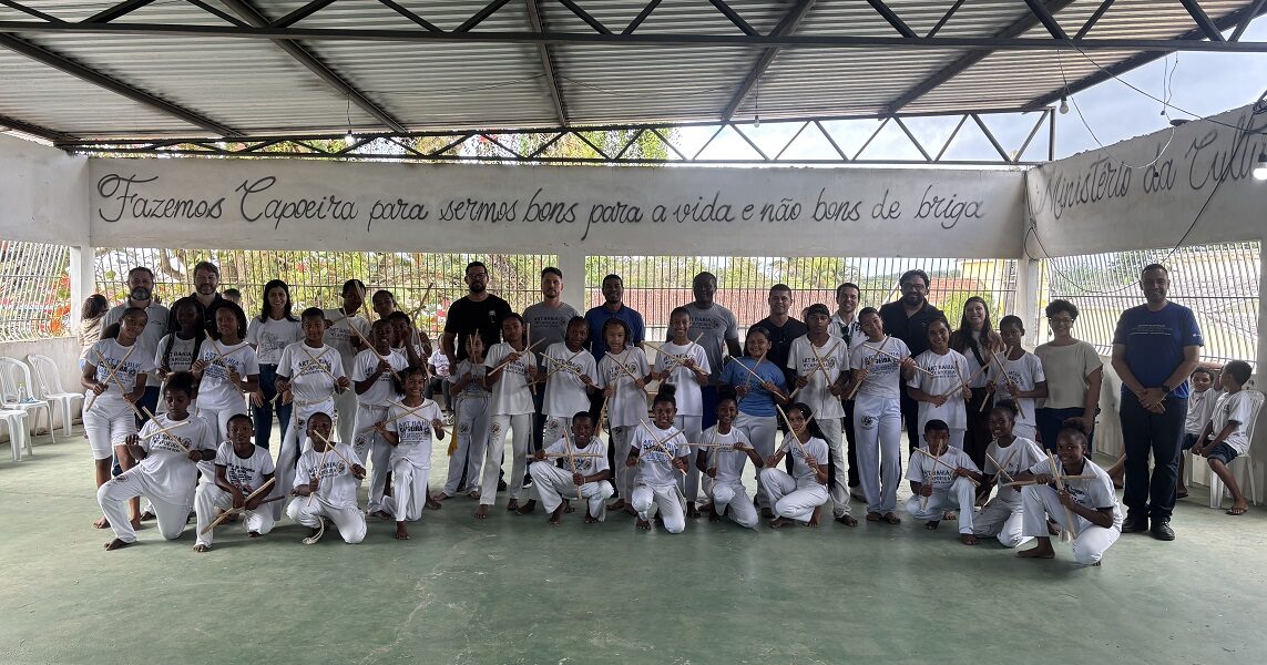 Um dos polos do projeto é a Escola de Capoeira Art Bahia, no distrito de Helvécia, onde as atividades foram ampliadas graças ao Edital Transformar o Futuro, da Suzano, que destinou recursos em 2024 para a aquisição de materiais e equipamentos utilizados pelos alunos.