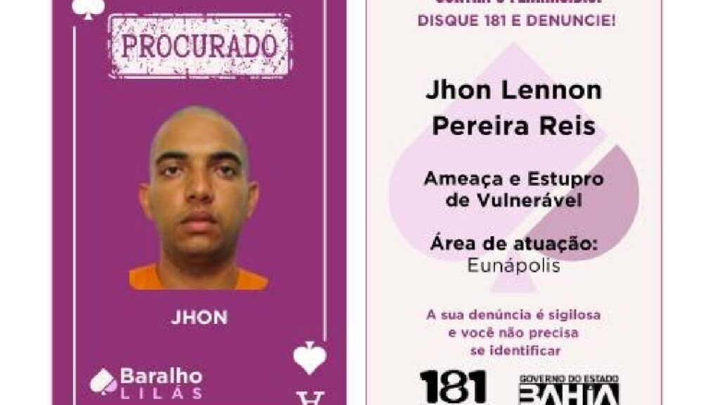 Governo da Bahia lança Baralho Lilás com 16 foragidos por crimes contra mulheres