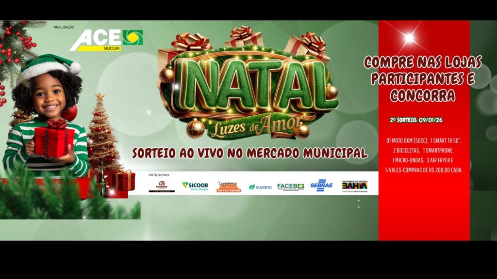 O primeiro sorteio acontece no dia 23 de dezembro e será transmitido ao vivo pelo Instagram @acemucuri, garantindo transparência, emoção e a participação de toda a comunidade. Um segundo sorteio também está programado, ampliando ainda mais as chances de ganhar.