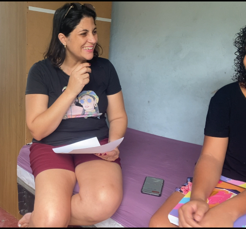 A equipe de reportagem acompanhada pela digital influencer Natalia Groomer entrevistou uma aluna de 10 anos sobre os desafios diários na escola municipal Raul Gazzinelli